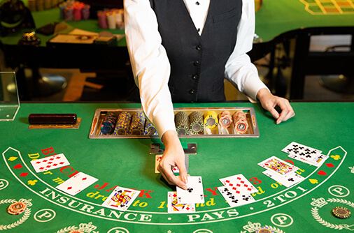 ディーラーとプレイヤーにカードを配り手札の合計数が「21」に近い方が勝ちとなるカジノの定番ゲーム。様々な国のカジノに対応できるよう多種多様なルールを学びます。